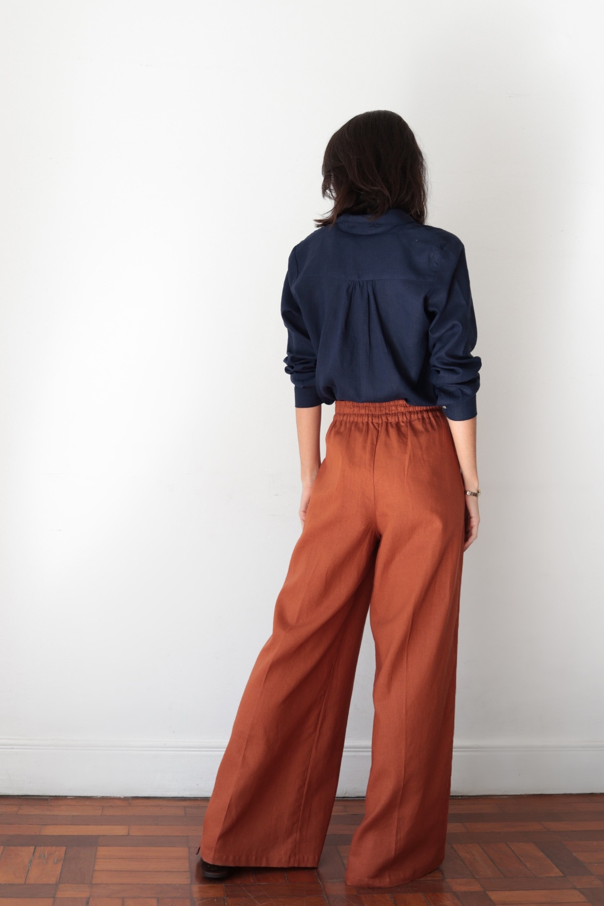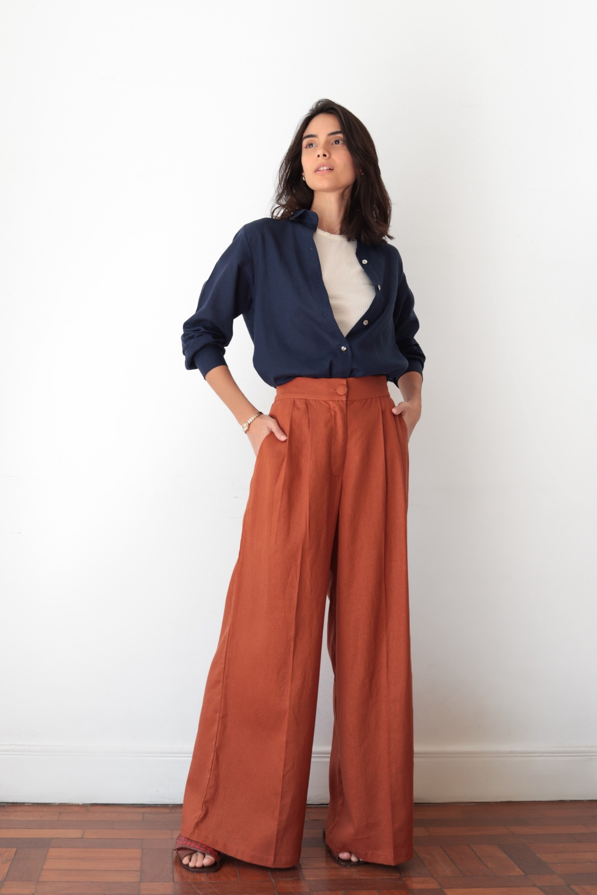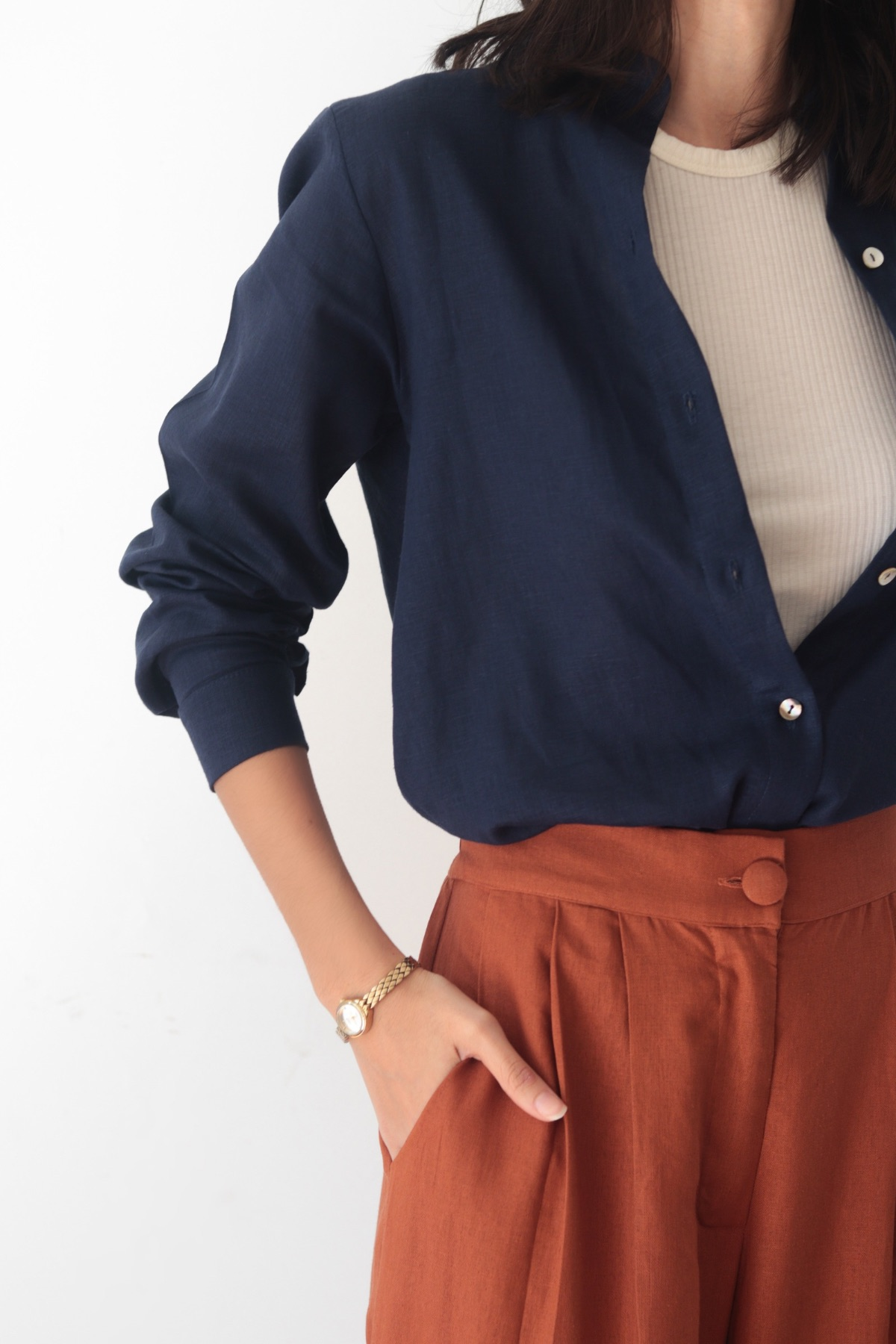 Camisa básica manga longa de linho azul marinho – Lunes
