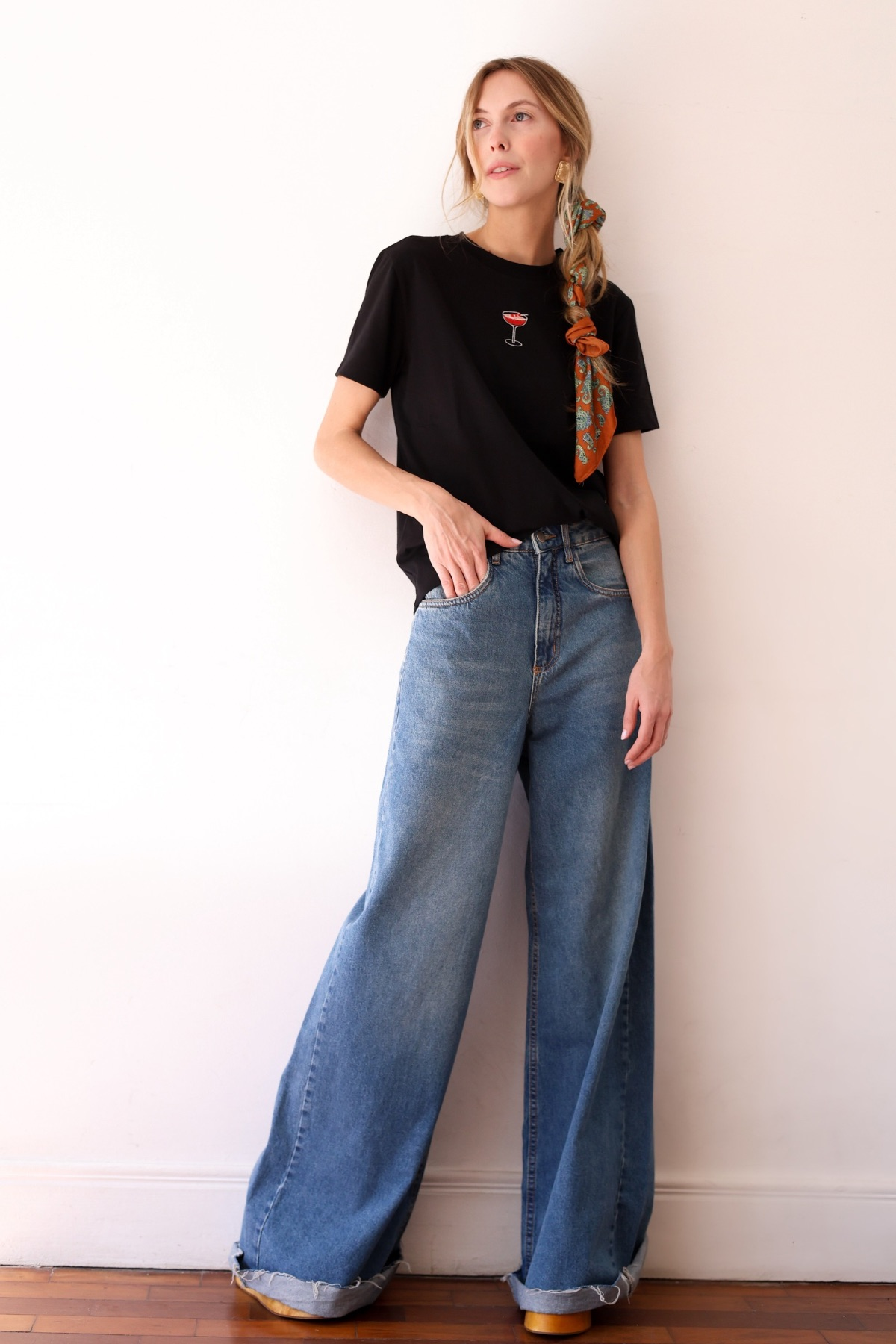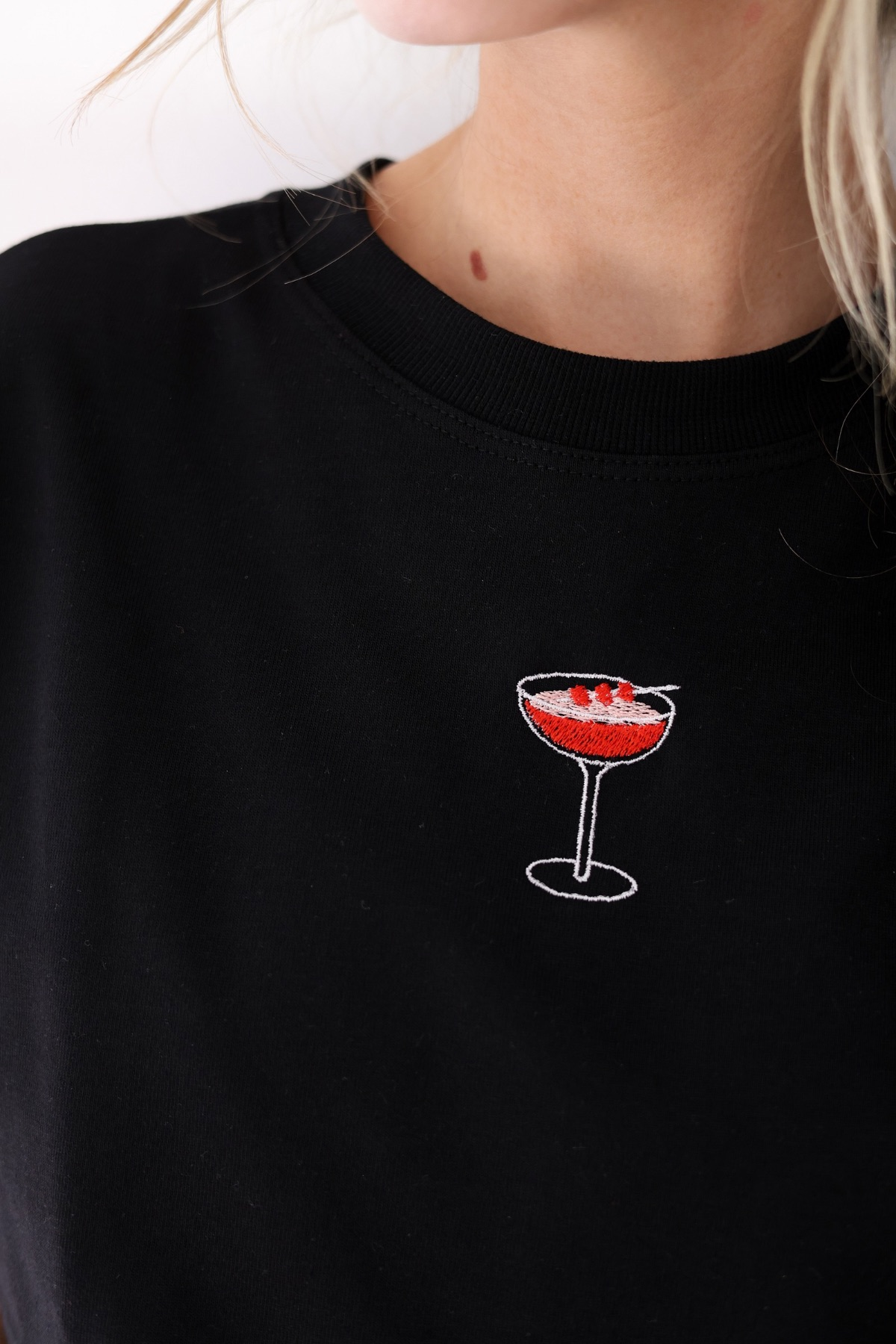 Camiseta em algodão pima com bordado de drink.