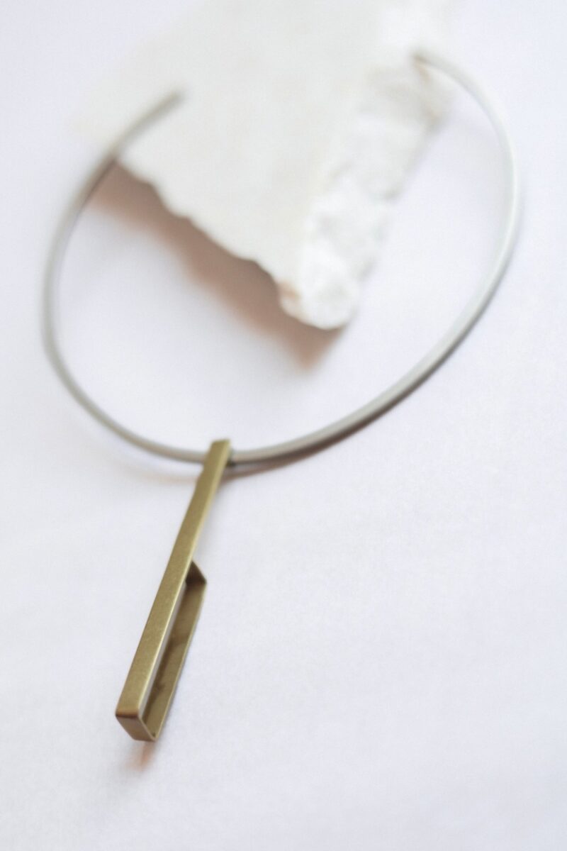 Choker fina em latão prata com pingente dourado.