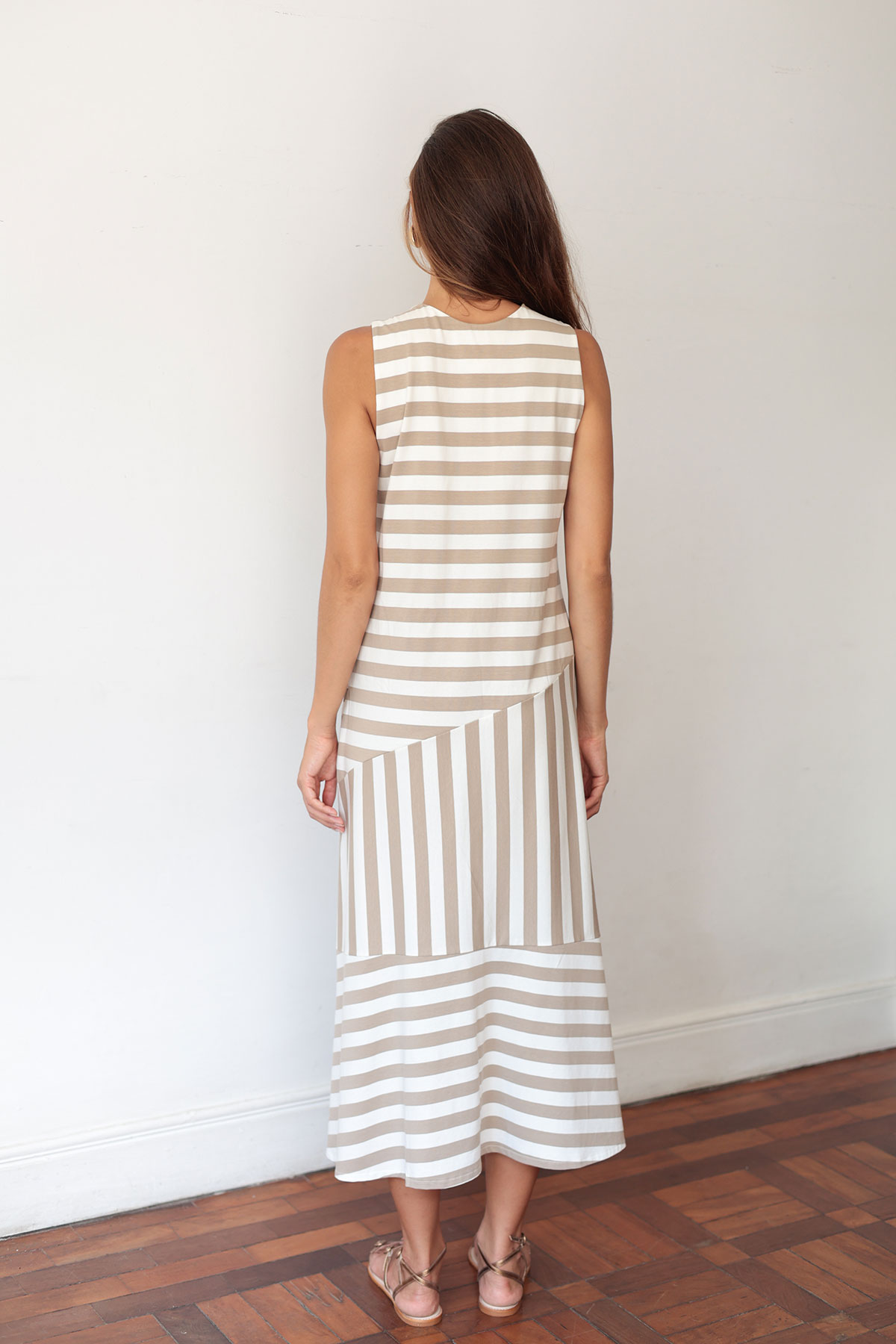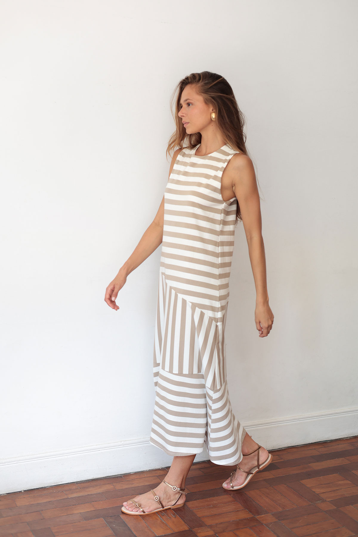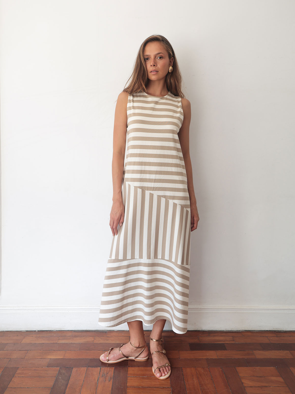 Vestido Agatha listrado – Bege